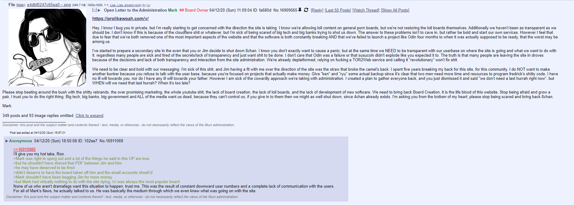 Imageboard culture has a lot of overlap with anime culture. There’s a crowd who dispute this, but they are wrong. Most imageboards will have a dedicated anime board, and those which don’t will still have frequent anime discussion (unless it’s banned outright, but I haven’t seen that anywhere). Anime, manga, and doujinshi is a common source for post images.Identification